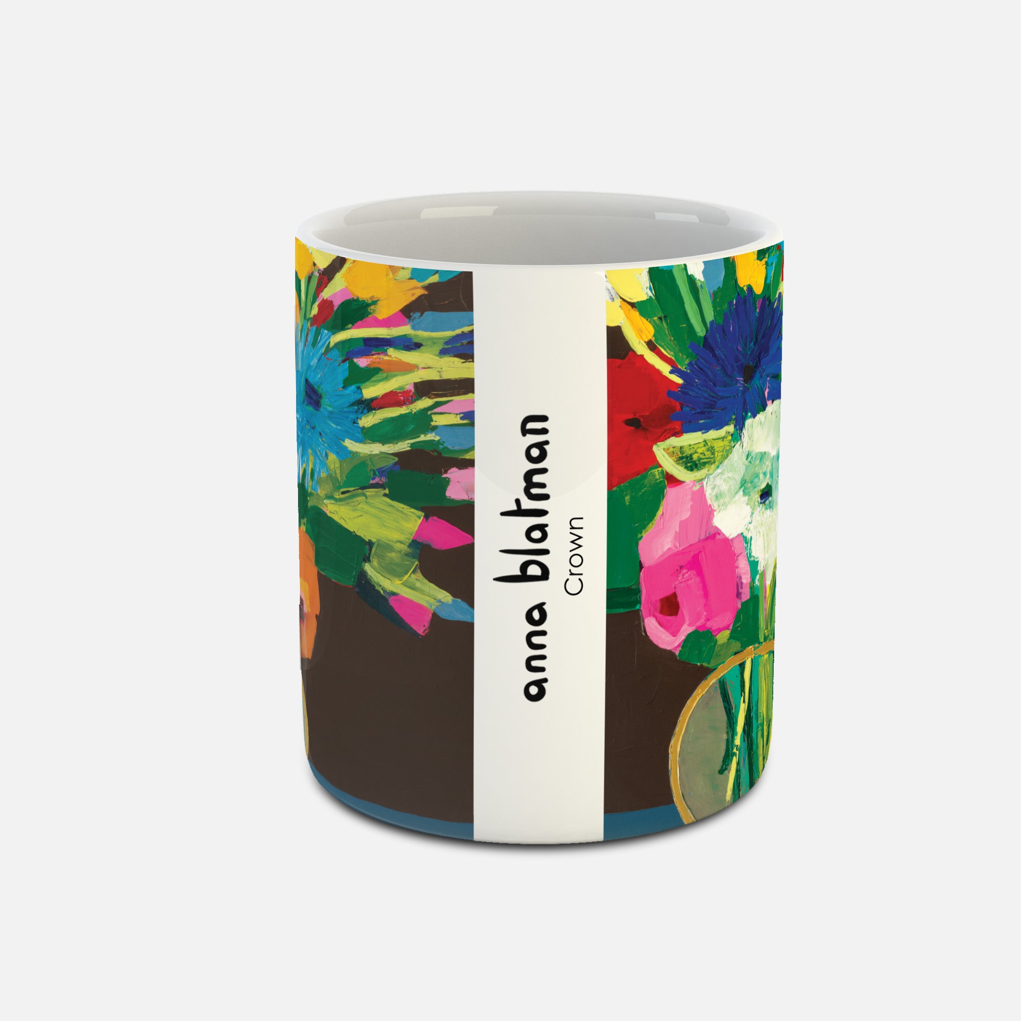 These mugs have a glossy finish and feature artwork on both sides, with Anna's signature and artwork title in the middle.