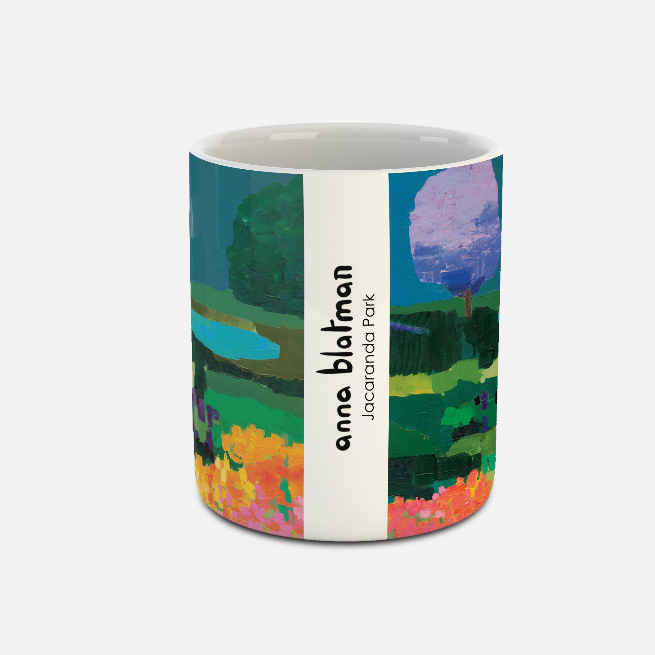 These mugs have a glossy finish and feature artwork on both sides, with Anna's signature and artwork title in the middle.